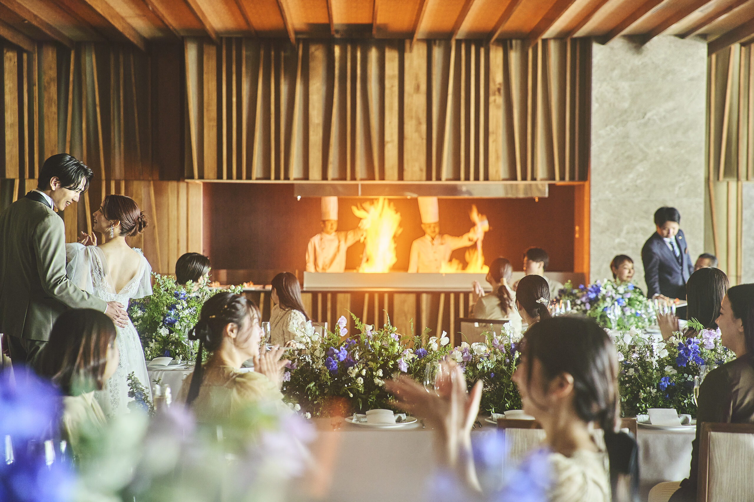 オープンキッチンでのシェフズキッチンスタイル、マッピング、ガーデン入場等サプライズ演出も可能です。