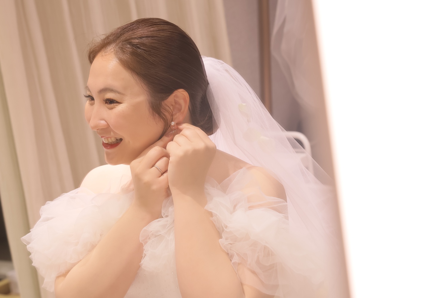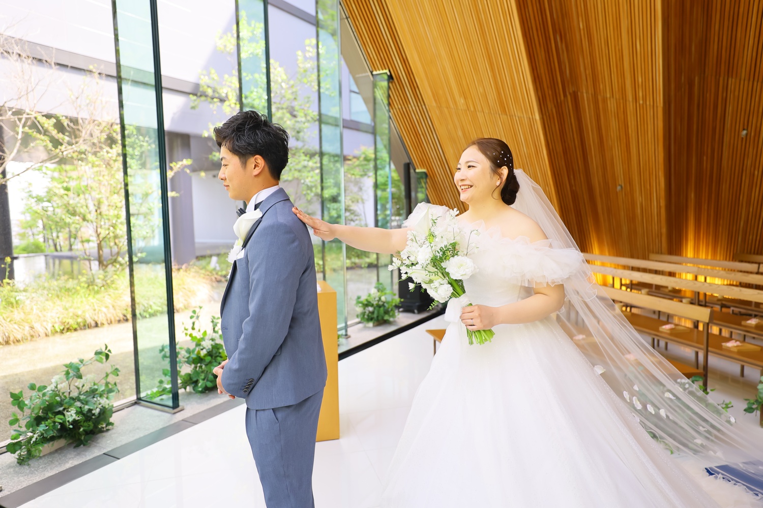お仕度ばっちり整った新婦様を見て新郎様も笑顔がこぼれました
